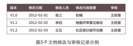 文档修改与审核记录:需求文档如有修改,需要简要记录,如图5-9所示。